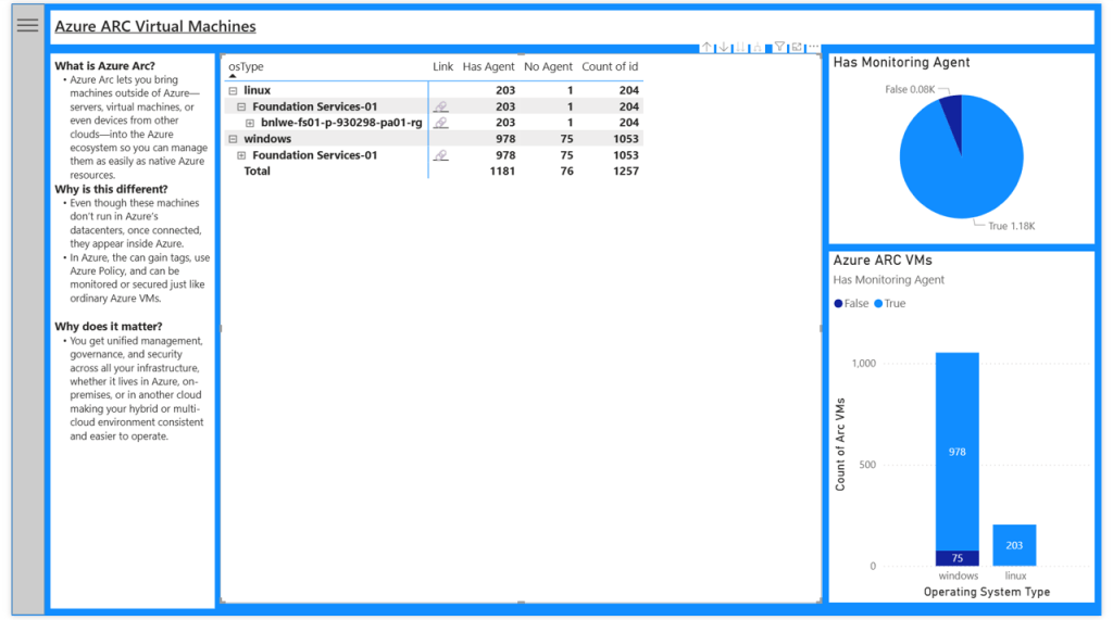 - Report on the current deployment state of the Azure Monitor Agent across Windows and Linux Operating system, whether they are an Azure virtual machine, Azure virtual machine scale sets or Azure Arc enabled server.