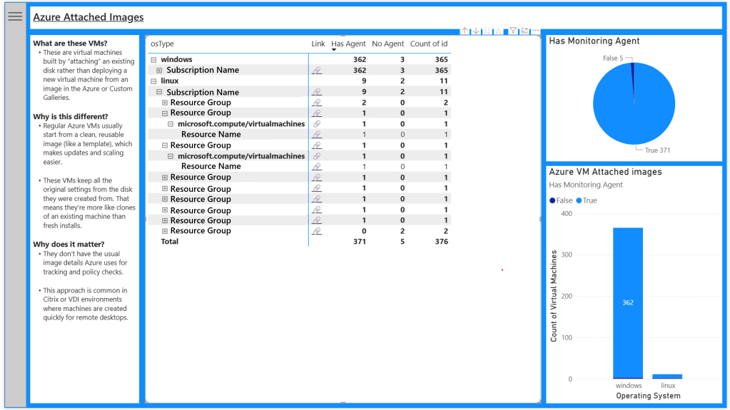 This helps identify all the images that require additional consideration. For example you may have deployed an Azure Marketplace image from a vendor where the operating system has been harden, or configured in such a way that no longer supports the Azure Monitor Agent. These reports is designed to help identify these scenarios.