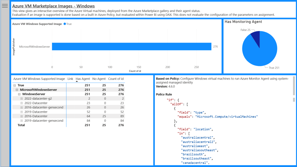 I have been using Power Bi more and more recently to create solutions to visuals and gather insights on data and a recent ask for help was to help understand the Azure Monitor Agent coverage, including identifying images that are not supported via the built in Azure policies.